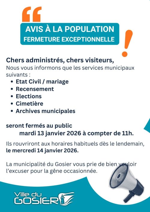 Fermeture exceptionnelle des services municipaux mardi 13 janvier