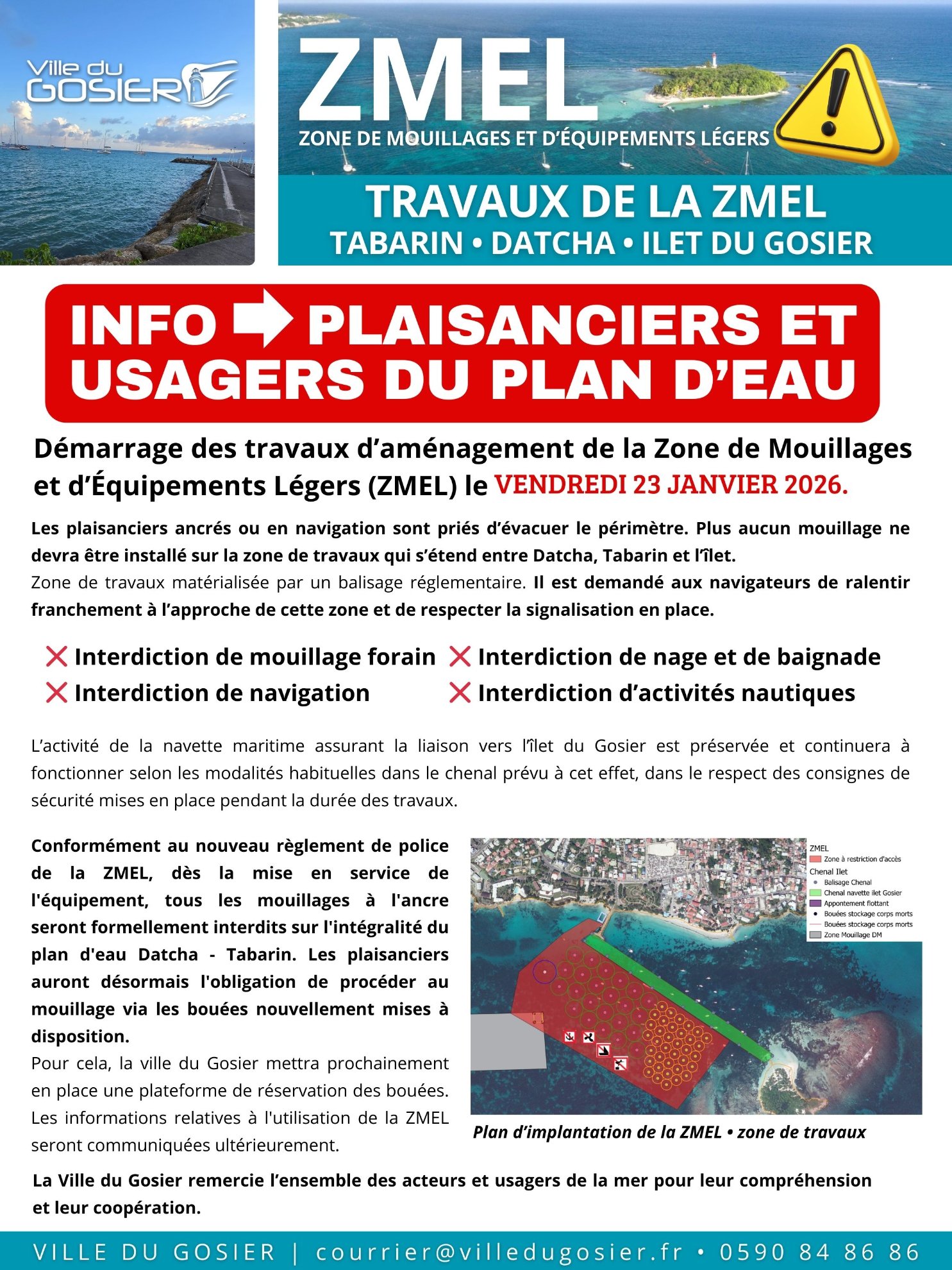 La Ville du Gosier remercie l’ensemble des acteurs et usagers de la mer pour leur compréhension et leur coopération.