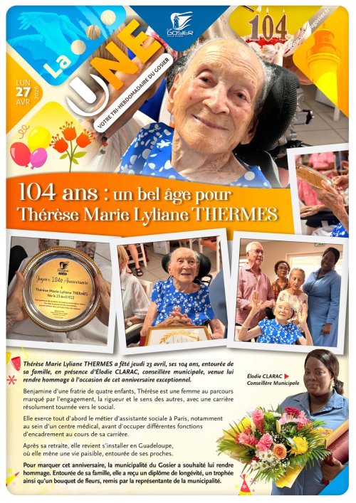 Pour marquer cet anniversaire, la municipalité du Gosier a souhaité lui rendre hommage. Entourée de sa famille, elle a reçu un diplôme de longévité, un trophée ainsi qu’un bouquet de fleurs, remis par la représentante de la municipalité.
