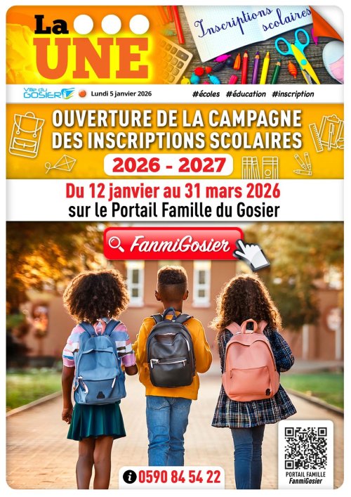 Inscription : du 12 janvier au 31 mars 2026 sur le portail famille du Gosier