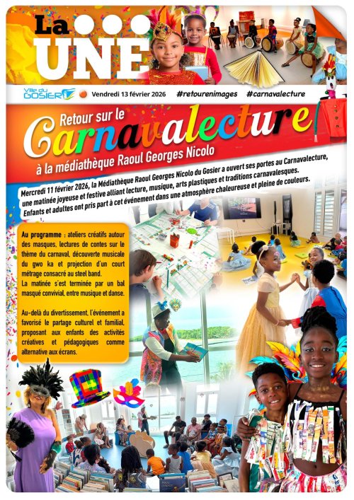 Mercredi 11 février 2026, la Médiathèque Raoul Georges Nicolo du Gosier a accueilli Carnavalecture, une matinée festive mêlant lecture, musique, arts plastiques et traditions carnavalesques.