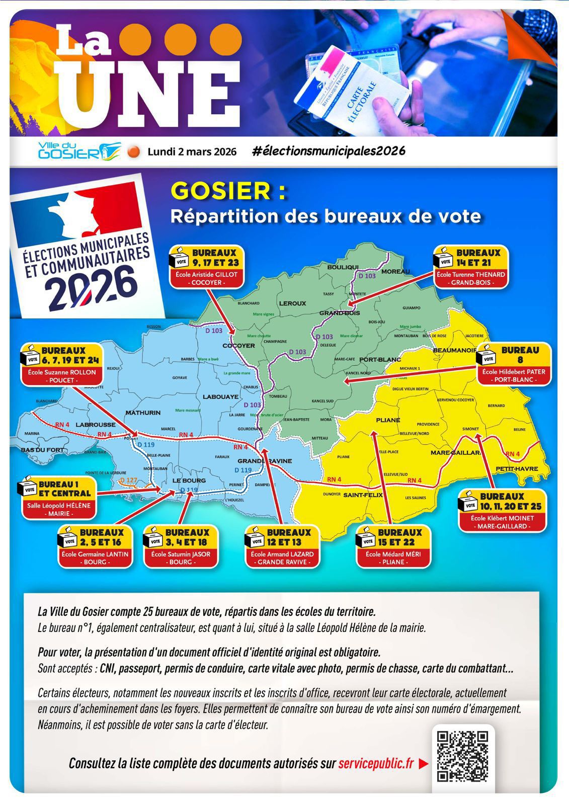 La Ville du Gosier compte 25 bureaux de vote, répartis dans les écoles du territoire.