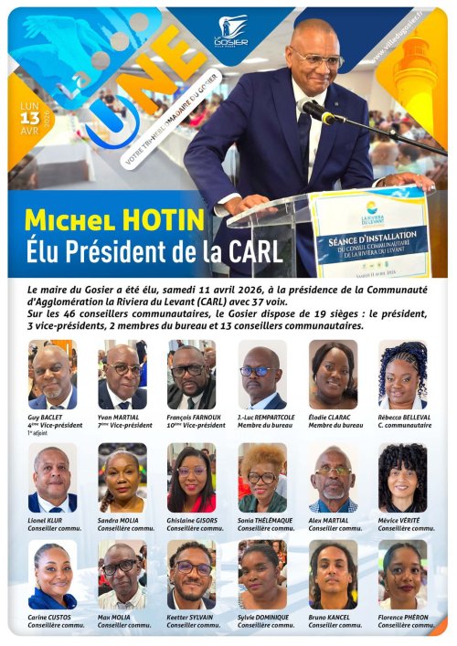 Le maire du Gosier a été élu, samedi 11 avril 2026, à la présidence de la Communauté d’Agglomération la Riviera du Levant (CARL) avec 37 voix.