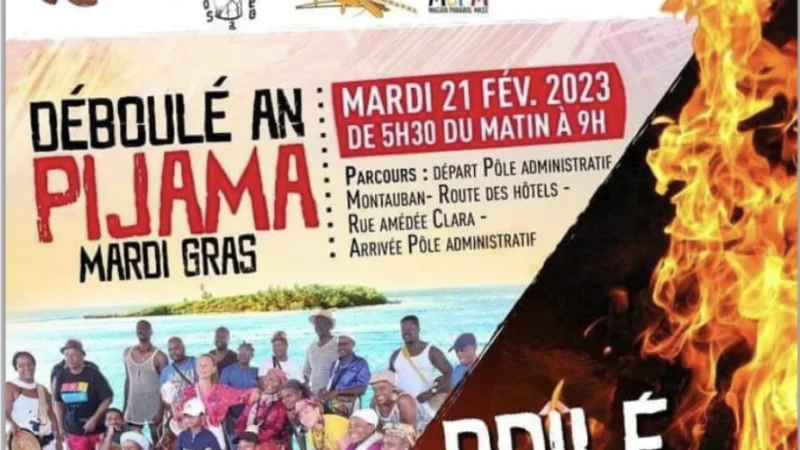 Mardi 21 février (mardi gras), un " déboulé en pyjama " de 5h30 à 9h00 au bourg du Gosier
