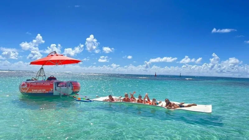 Pour vos sorties de plage en famille ou entre amis, Stéphanie et Jenna vous proposent un concept amusant pour changer de vos habitudes, le DONUTS BBQ BOAT, littéralement appelé bateau barbecue. Vous pourrez conjuguer balade, baignade, acrobaties et bronzette sur un tapis géant tout en pique-niquant dans l’un des dix plus beaux lagons du monde à Saint-François.