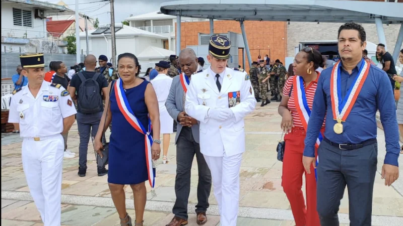 À cette occasion, les jeunes volontaires ont reçu leur insigne et ont été présentés au drapeau du régiment. Un moment fort d’émotion pour ses jeunes qui ont débuté en septembre au RSMA et qui par cette cérémonie clôture leur formation militaire initiale. Le caporal-chef Désirée a été également honoré en recevant la médaille d’argent des Outre-mer. Cédric Cornet en tant que maire du Gosier est fier d’avoir accueilli le RSMA pour ce moment unique important dans la vie de ces jeunes recrues. Le maire salue et encourage l’effort des jeunes volontaires stagiaires qui ont fait le choix de la formation professionnelle.