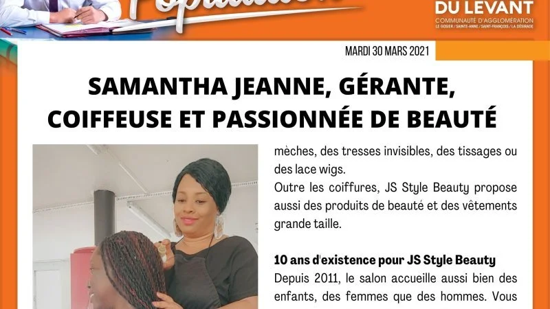 Samantha JEANNE est à la tête du salon de coiffure JS Style Beauty situé à Saint-Félix, au Gosier, au-dessus du libre-service "Chez Jeanne".