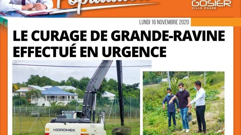 Ces travaux de curage avaient été demandés par le Chef d’édilité depuis le mois d’août 2020 à la Région Guadeloupe. Leur programmation au mois de novembre n’avaient pas pris en compte le passage d’une onde tropicale de forte intensité. C’est ce jeudi 12 novembre que les travaux ont alors démarré dans le canal de Grande Ravine afin de fluidifier la circulation de l’eau. Ils seront étendus au canal de Belle-Plaine, d’ici quelques semaines.