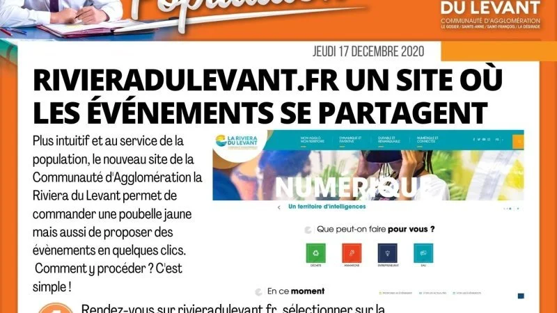 Plus intuitif et au service de la population, le nouveau site de la Communauté d’Agglomération la Riviera du Levant permet de commander une poubelle jaune mais aussi de proposer des évènements en quelques clics.