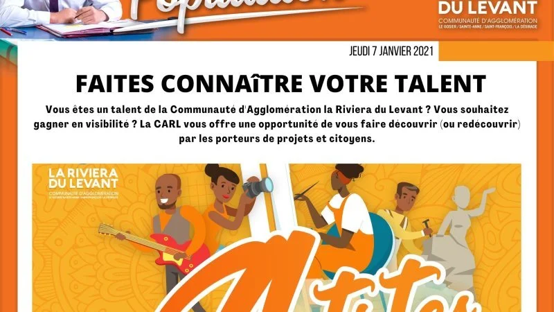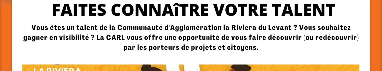 Vous êtes un talent de la Communauté d’Agglomération la Riviera du Levant ? Vous souhaitez gagner en visibilité ? La CARL vous offre une opportunité de vous faire découvrir (ou redécouvrir) par les porteurs de projets et citoyens.