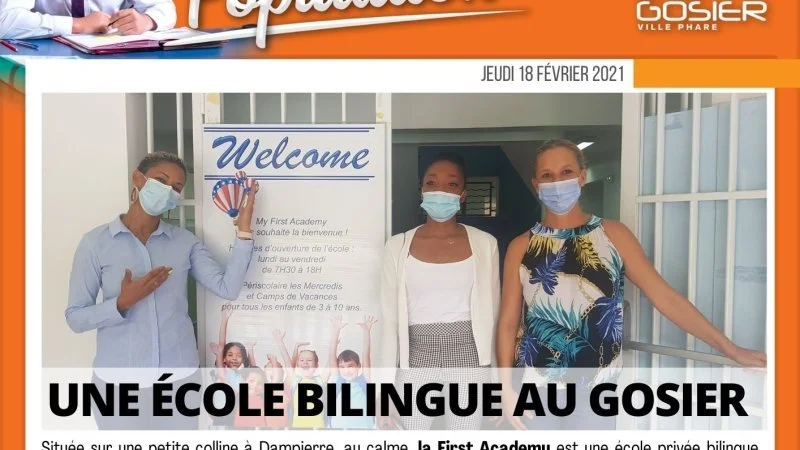 Située sur une petite colline à Dampierre, au calme, la First Academy est une école privée bilingue (français - anglais) qui vient renforcer l’offre d’enseignement sur le territoire du Gosier. Ce nouvel établissement pourra dès la prochaine année académique, 2021 - 2022, accueillir 105 élèves répartis sur les 8 niveaux, de la petite section de maternelle jusqu’au CM2.