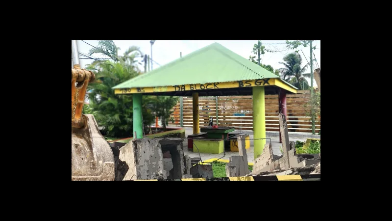 Cédric Cornet informe la population que des travaux de démolition du carbet béton et de réhabilitation de l’Espace Sportif de Proximité (ESP) situé à proximité de l’école de Mangot ont débuté