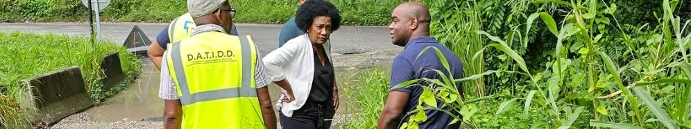 L’objectif de cette visite était d’inspecter les travaux de réhabilitation des routes des zones de Délègue, Labouaye, Chataignier, Fond Marius et Mare Gallon.