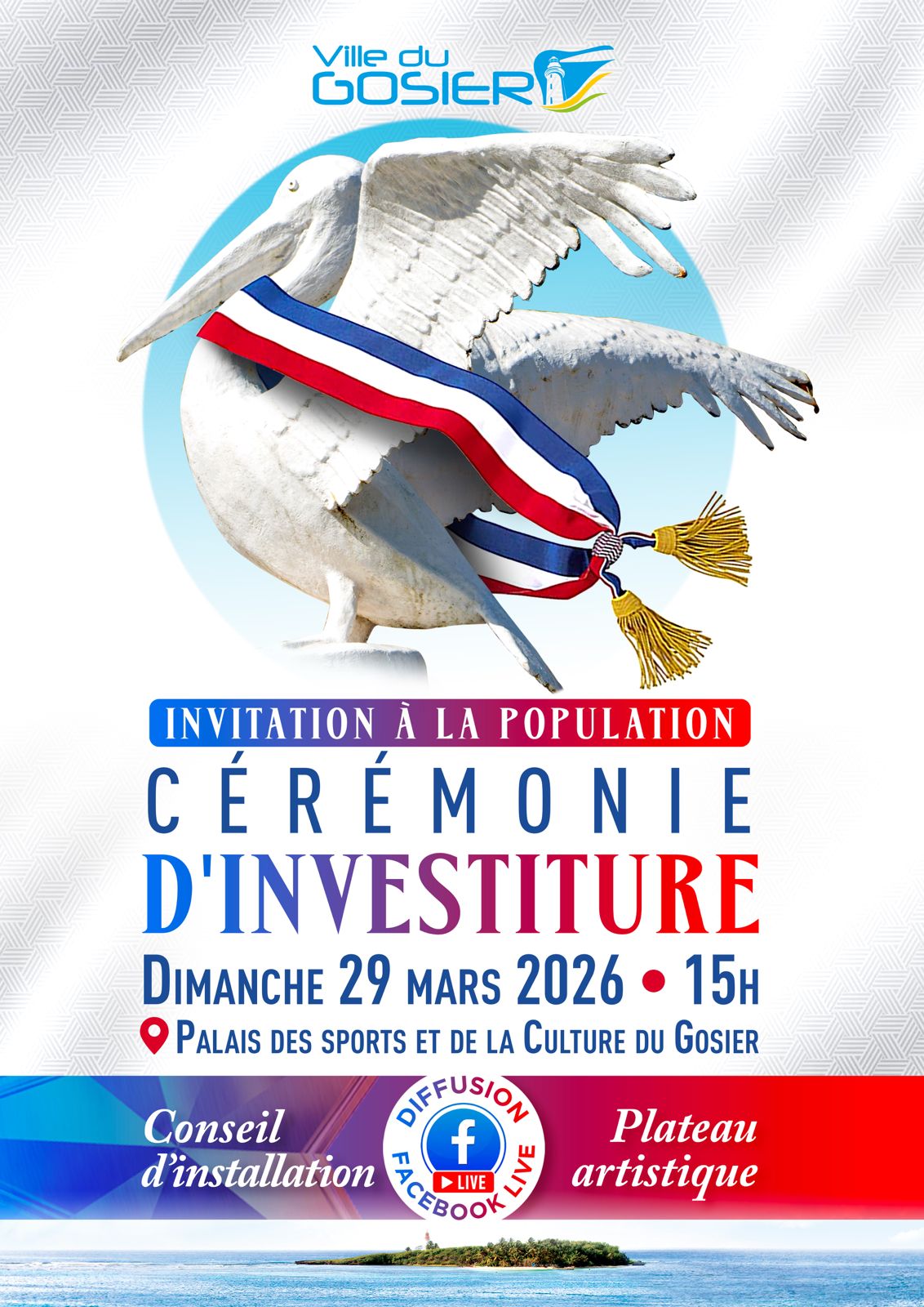 La Ville du Gosier convie l’ensemble de la population à un temps fort de la vie démocratique locale : l’installation officielle du nouveau Conseil municipal, à l’issue des élections du 22 mars 2026.