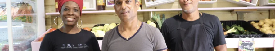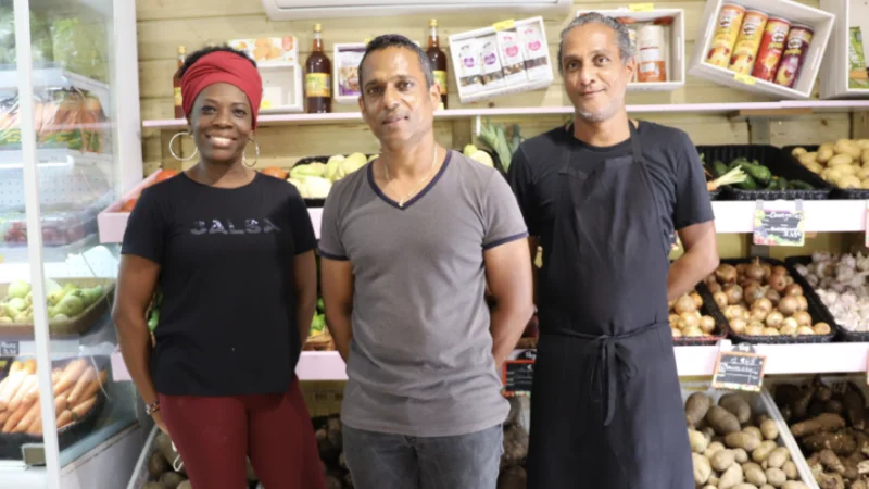 Dans le magasin, vous trouverez des étals de produits frais venant de l’archipel. “En grande majorité, on a des produits locaux : melons, racines, igname, madère de Capesterre, citrons de Goyave, patate douce, pòyò de Saint-François, des ananas, de la salade, des tomates, etc.”
