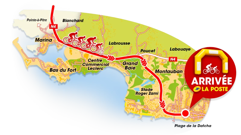 L’arrivée au Gosier se fera à partir de l’entrée du bourg, en passant par Montauban, pour terminer devant la Poste.