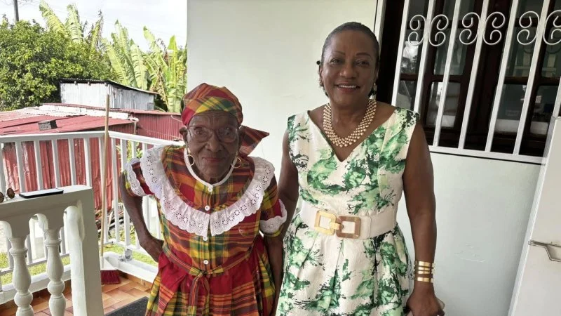 Dans sa maison à Beaumanoir, entourée de ses enfants, elle a reçu la visite du maire du Gosier, Liliane Montout et de Jocelyne Virolan, vice-présidente du Centre Communal d’Action Sociale, établissement public qui oeuvre notamment en faveur des personnes âgées.