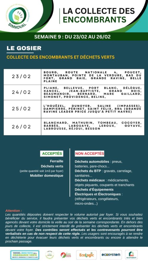 Attention ! Les quantités déposées doivent respecter le volume autorisé par foyer. Si vous souhaitez bénéficier du service, il faudra présenter vos encombrants et déchets verts, triés et bien agencés devant votre domicile la veille au soir de la semaine correspondante. En dehors des jours de collecte, il est strictement interdit de présenter les déchets devant votre foyer. Des contrôles seront effectués et les contrevenants pourront être verbalisés en cas de non respect de cette règle. Les usagers sont encouragés à se rendre en déchèterie pour évacuer leurs déchets ou encore attendre le prochain passage.