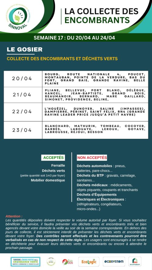 Secteurs collectés : L’Houëzel, Dunoyer, Saline (impasses), Dampierre, Périnet, Saint-Félix, RN4 de Grande-Ravine Leader Price jusqu’à Petit-Havre