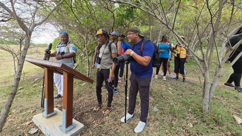 Au cours de la visite, les participants équipés de jumelles, ont pu observer diverses espèces, notamment la Frégate superbe (Fregata magnificens) au-dessus de la mer, la Paruline jaune dans les forêts sèches et marécageuses, ainsi que des ardéidés et des limicoles dans les salines et la mangrove. Parmi les oiseaux fréquemment rencontrés, on compte l’Échasse d’Amérique (Himantopus mexicanus) et l’Aigrette neigeuse (Egretta thula). Le site est également connu pour la présence du Moqueur grivotte (Allenia fusca), Balbuzard pêcheur (Pandion haliaetus), sans oublier notre oiseau endémique, le pic de Guadeloupe, connu localement sous le nom de tapeur tapé, toto bwa ou toc-toc.