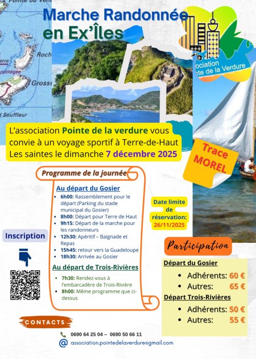 La date limite de réservation est fixée au 26 novembre 2025. Pour toute information ou inscription, vous pouvez contacter le 0690 64 25 04 ou le 0690 50 66 11, ou écrire à association.pointedelaverdure chez gmail.com
