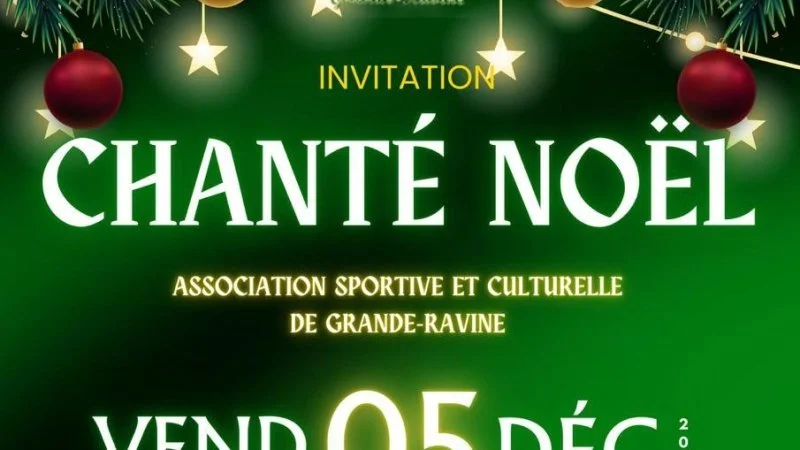 L’Association Sportive et Culturelle de Grande-Ravine vous invite à son traditionnel Chanté Noël le vendredi 5 décembre 2025 à 20h animé par le groupe Nwèl an kaz ; chacun est invité à apporter une boisson, un amuse-bouche ou toute autre participation de son choix.