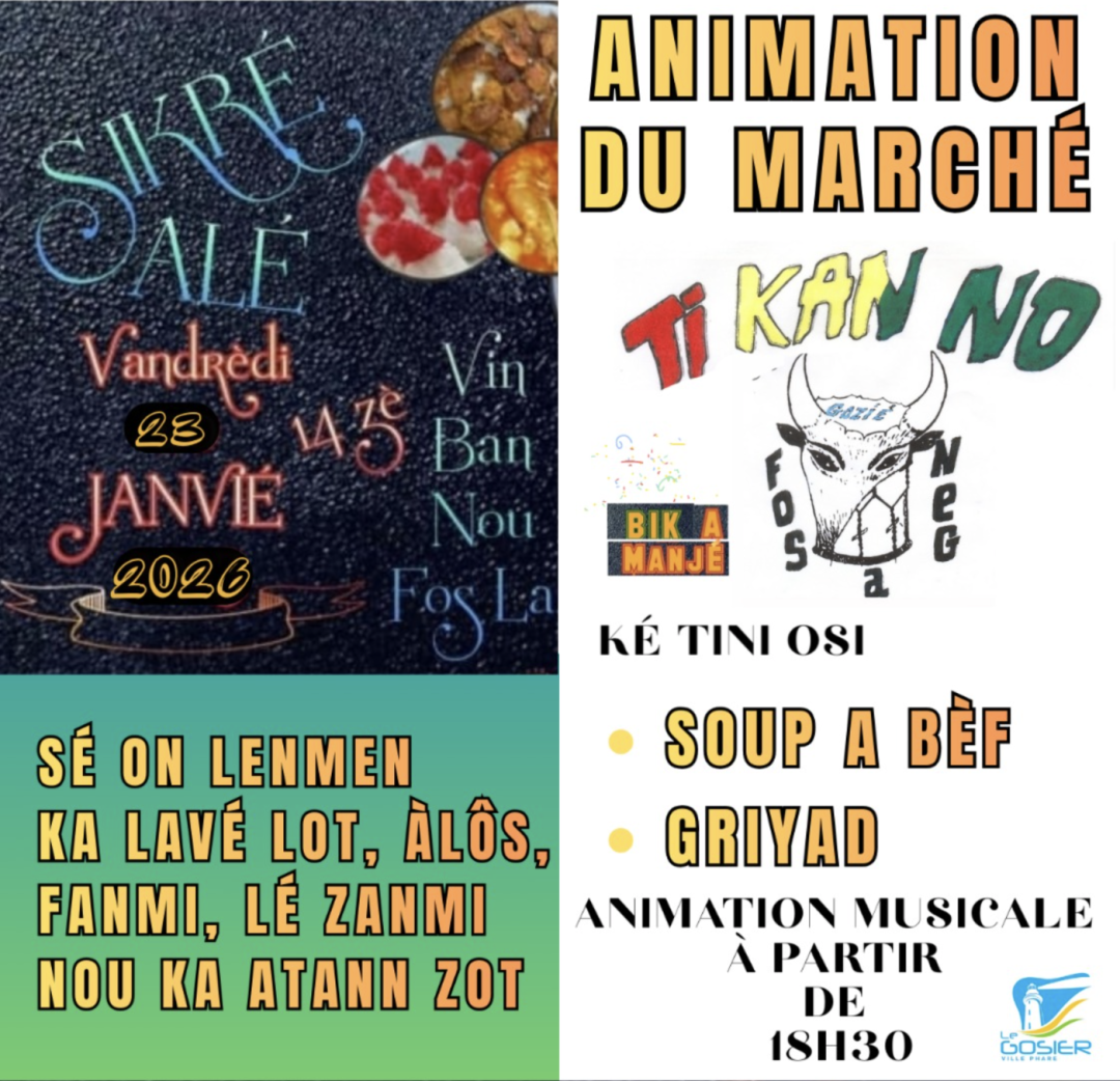 Le vendredi 23 janvier 2026, le groupe Ti Kan’No vous donne rendez-vous sur le marché agricole du Gosier pour une foire sucré-salé placée sous le signe de la convivialité et du partage.