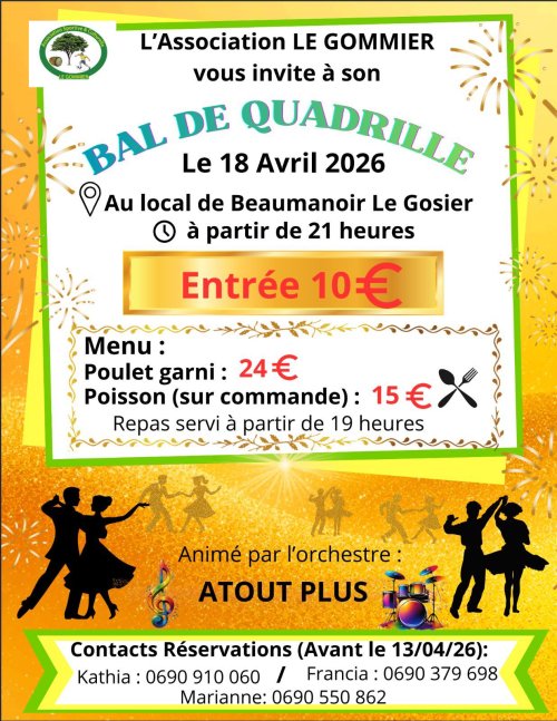 Les réservations sont à effectuer avant le 13 avril 2026 auprès de Kathia au 0690 910 060, Francia au 0690 379 698 ou Marianne au 0690 550 862.