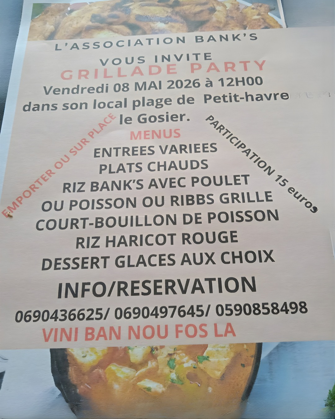 Contacts : 0690 43 66 25 - 0690 49 76 45 - 0590 85 84 98